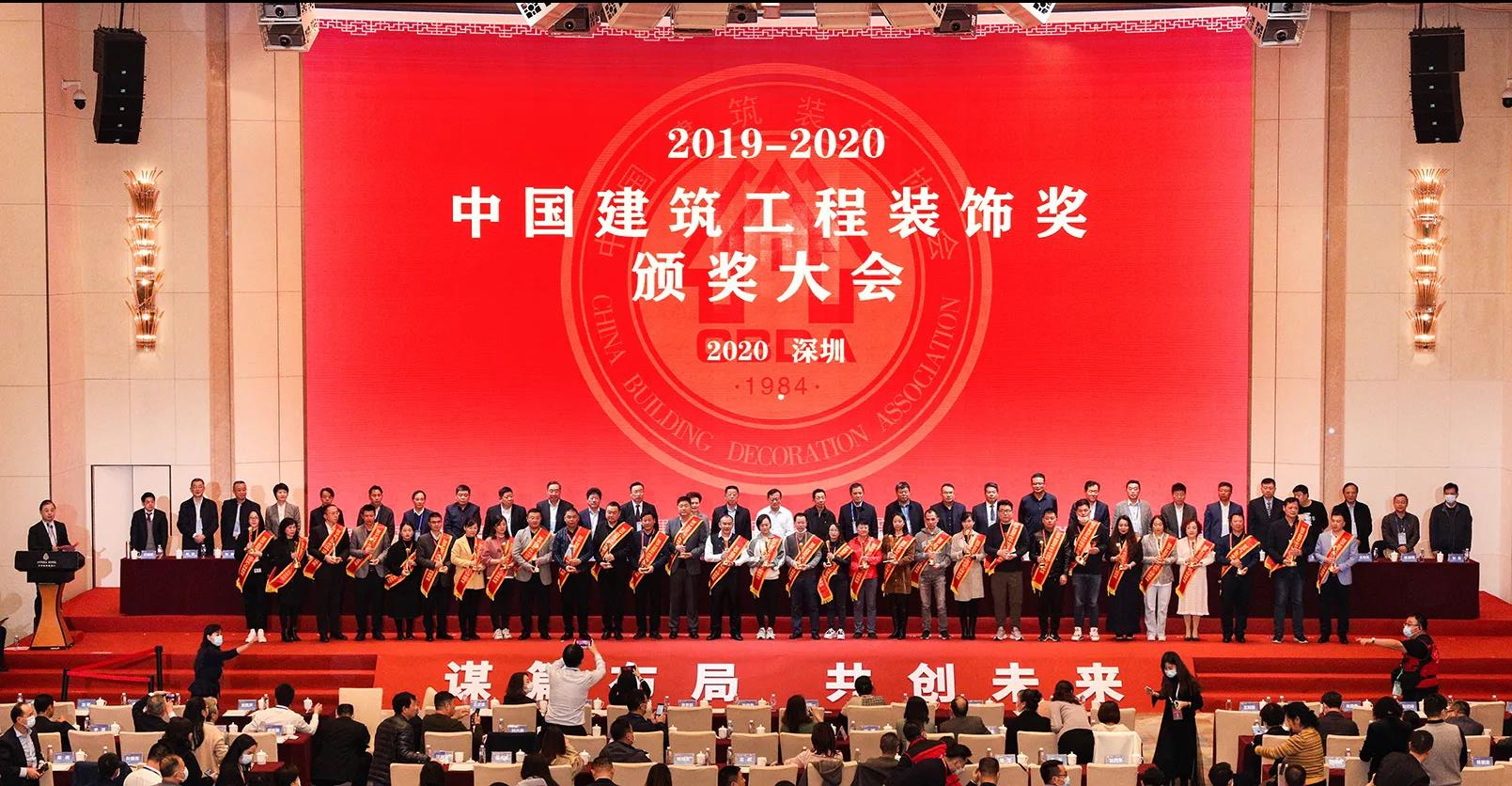 ? ? ?12月23日上午,中國建筑裝飾協會于深圳召開了中國建筑裝飾協會八屆五次理事會、常務理事會暨裝飾行業轉型升級高質量發展高峰論壇,會上發布了中國建筑裝飾行業綜合數據統計結果;在2019-2020年度中國建筑工程裝飾獎頒獎儀式上向本次獲獎的企業代表授予了證書,并頒發牌匾。? ? ? ? ? ? ? ? ? ? ? ? ? ? ? ? ? ? ?